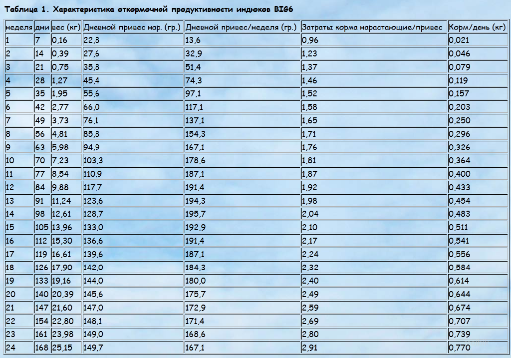 Таблица привеса индюков Биг 6
