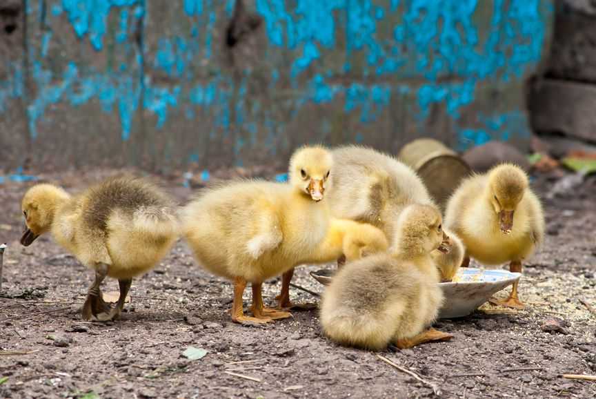 Гулять на улице молодые гуси могут с 7 дней, если погода теплая и сухая. Начинать кормление птенцов нужно сразу же после их обсыхания. Принципы питания: