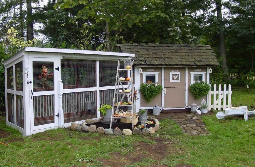 Лучшее место для птичьего домика — отдаленный от жилья уголок приусадебного участка. Курятник с вольером для выгула должен быть единой обособленной территорией.