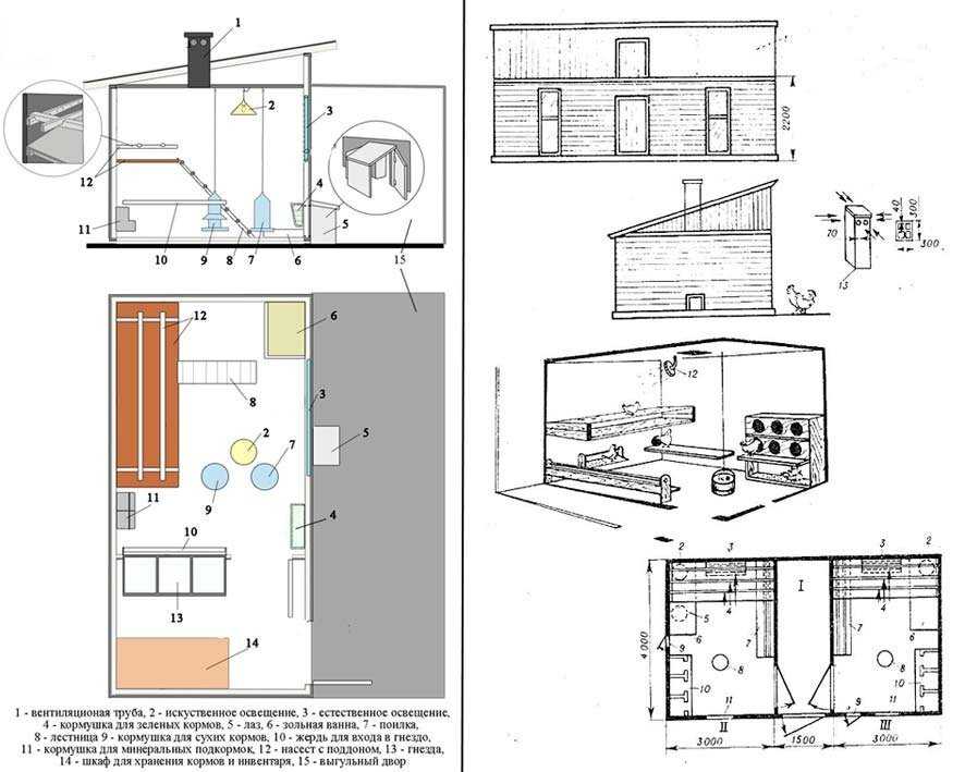 Построить зимний курятник своими руками можно и без чертежа. Однако специалисты рекомендуют все же делать чертеж будущего здания, чтобы облегчить себе работу.