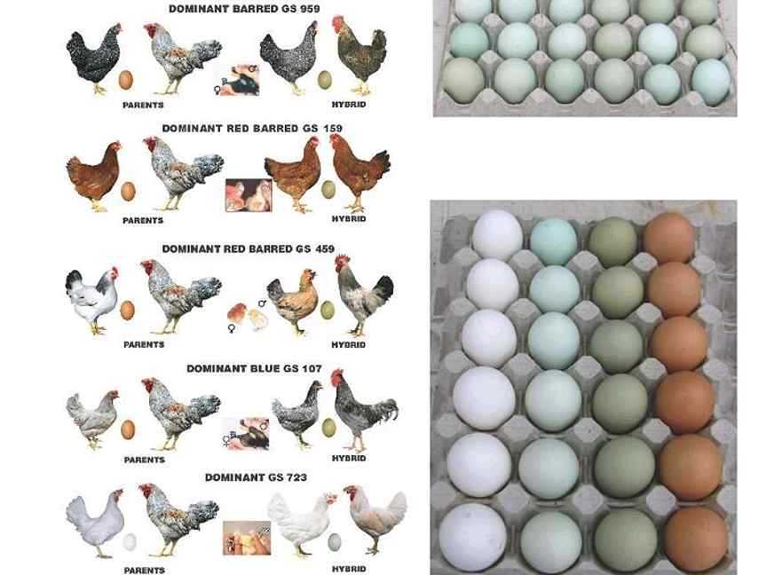 Бурый кросс Доминант 102 получен в результате скрещивания белых и бурых Род Айлендов. В селекции кросса Д 192 брали участие Род Айленды и Суссексы. Самцы этой линии белые, а самочки – коричневые. Яйценоскость 300-315 штук в год, скорлупа яиц коричневая. Продуктивность сохраняется до 3 лет жизни. Бурые птицы подходят для выращивания на больших птицефабриках.