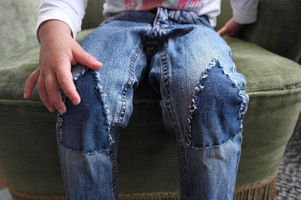 Этот способ ремонта хорош тем, что им можно воспользоваться в качестве профилактической меры. Действительно, для чего ждать, когда ребенок порвет брючины на коленях, если можно защитить вещь и избежать возникновения проблемы?