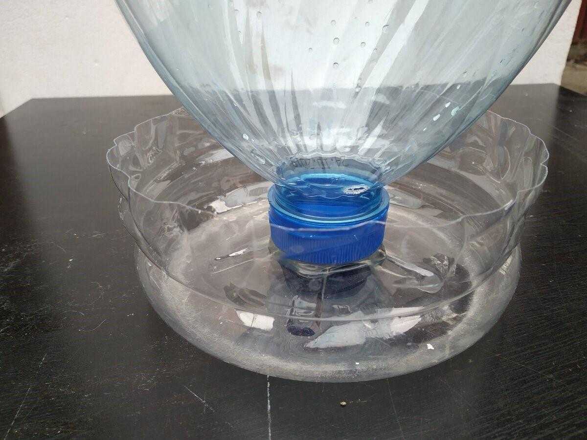 - доступность материалов (всё что понадобится — пластиковая бутылка и неглубокая подставка для неё);