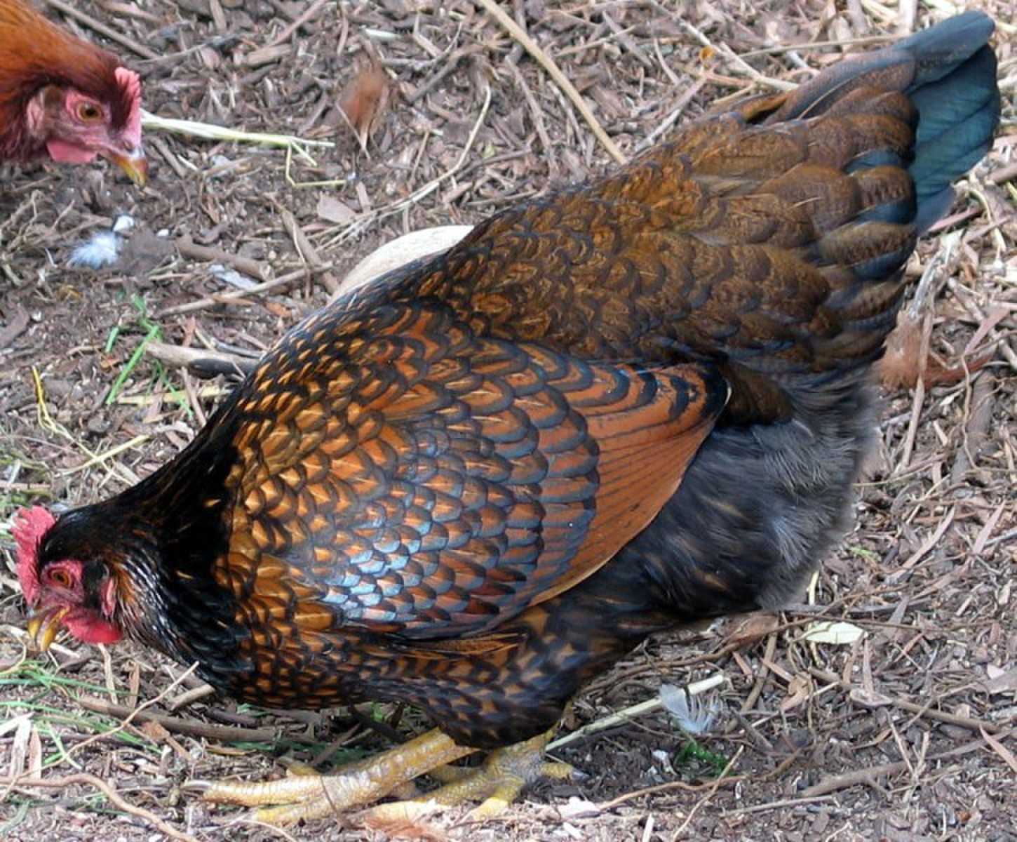 Обратите внимание! Хвост курицы широкий, но короткий, у петуха — пышный, нарядный. Существует также карликовая разновидность кур барневельдер, они представляют собой миниатюрную копию полновесных собратьев