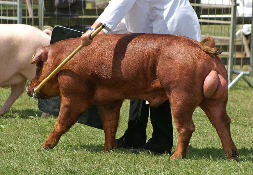 Изначально порода свиней Дюрок была сального направления, но с повышением спроса на качественную свинину профиль животного постепенно сменился. Теперь это мясная порода с большим количеством присущих ей достоинств: