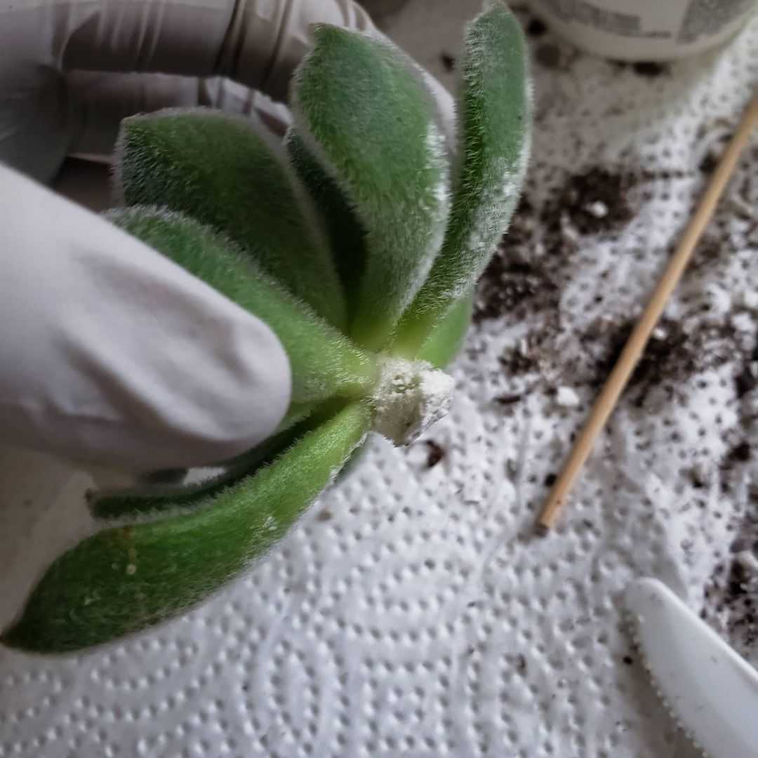 - Паста на основе мела и медного купороса. Необходимо смешать 3 ст. ложки толченого мела, 1 ч. ложку медного купороса и 0,5 л воды. После перемешивания получается жидкость сметанообразной консистенции, которой нужно смазать нижнюю часть стебля, корневую шейку и пораженные корни. После обработки корешки слегка подсушивают и сажают растение в свежий грунт.