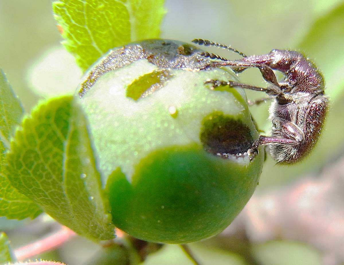 Плоды с проколами жука становятся корявыми. Часть опадает, съедается личинками или сгнивает. Вредители распространяют по плодам споры монилиоза. В годы с обильным цветением садов вред кажется незначительным, но если завязи немного насекомые ощутимо влияют на продуктивность деревьев. Экономический порог вредоносности — 15% почек, подъеденных в фазе зеленого конуса.
