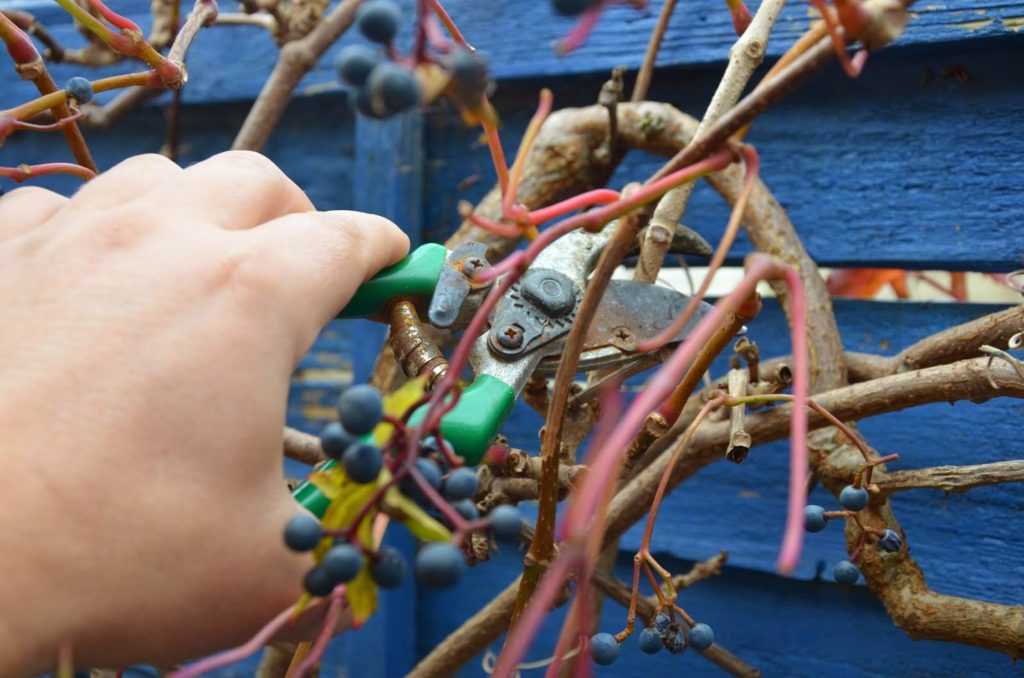 Обрезку лозы девичьего винограда проводят круглый год. Если этого не делать, то декоративные свойства будут утрачены, а зеленый ковер превратится в лесные заросли. Весенняя обрезка заключается в удалении травмированных веток и побегов девичьего винограда, не развивающихся в сторону опоры.