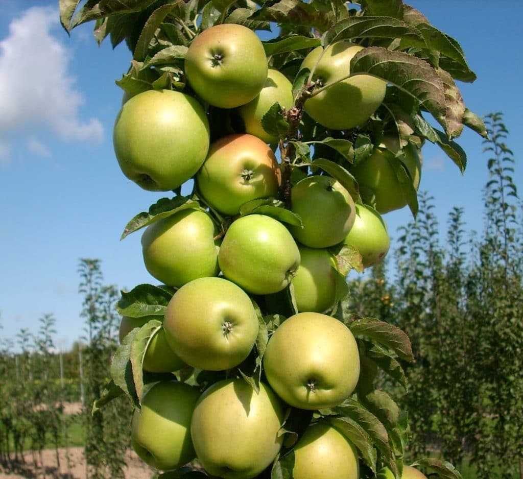Колоновидные яблони относятся к деревьям интенсивного типа, отличающиеся скороплодностью.
