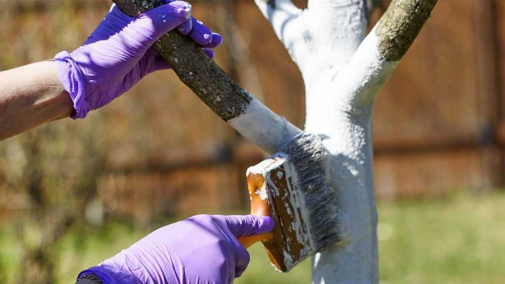 - Побелка ствола. Деревья весной принято белить. Эта процедура не только помогает защитить кору от образования морозобоин, но и дезинфицирует, способствует уничтожению личинок вредоносных насекомых.