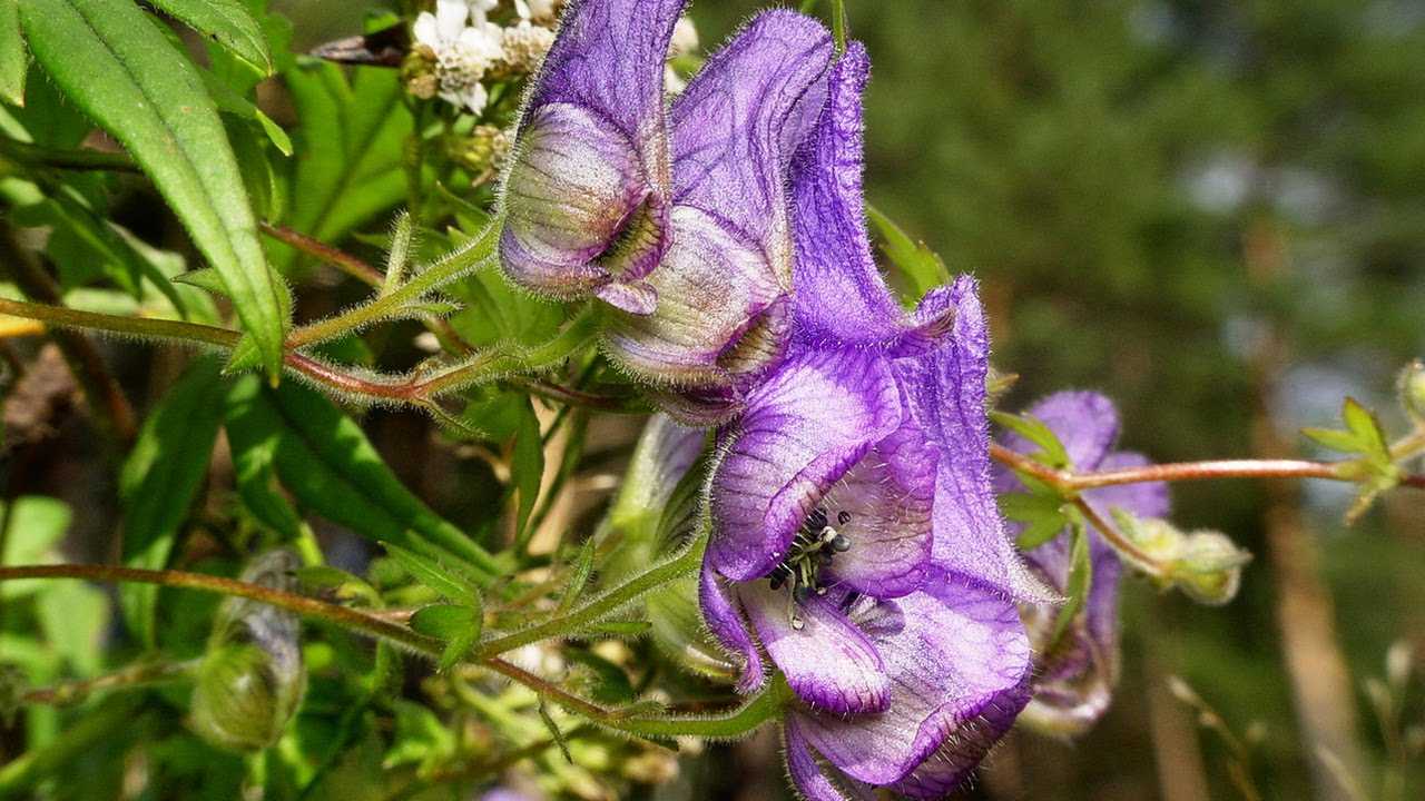 Аконит пестрый – растение, встречающееся в Средней Европе и России. Вырастает до ста пятидесяти сантиметров в высоту, имеет плотные листья и голубые, а также темно-синие цветы, достигающие двух сантиметров в диаметре.