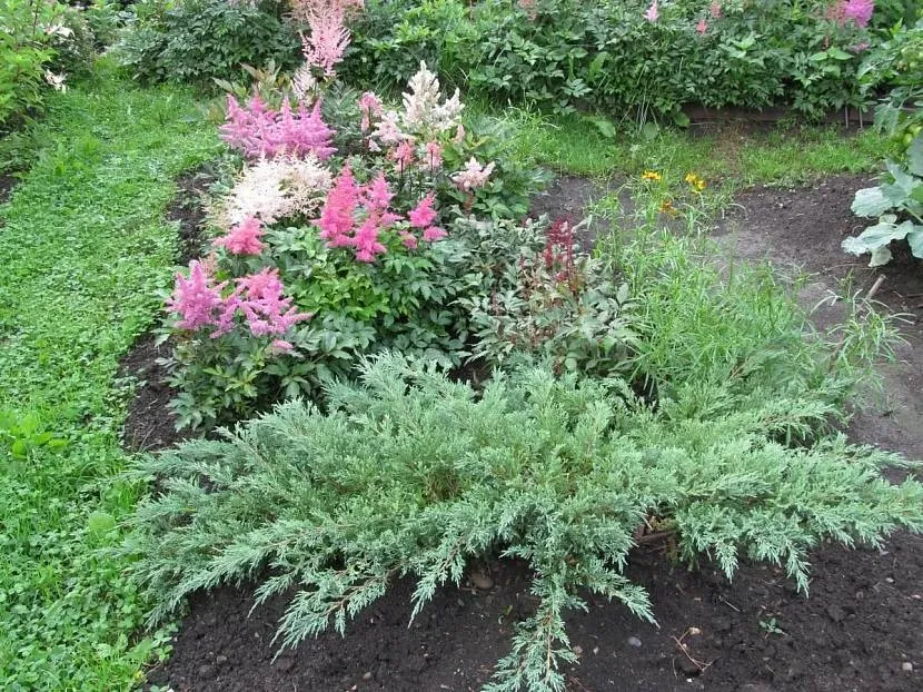 Оформление клумбы астильбой и хвойными кустарникамиИсточник yandex.net