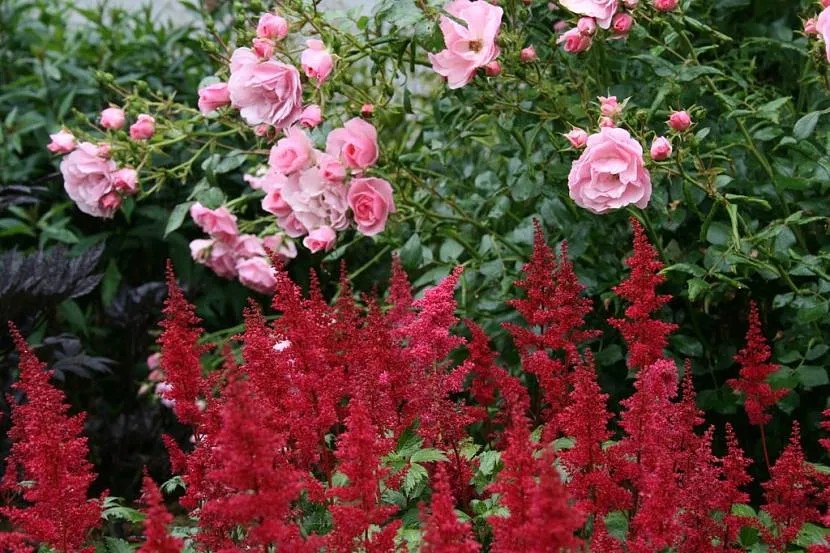 Сочетание астильбы и розы весной в садуИсточник shopify.com