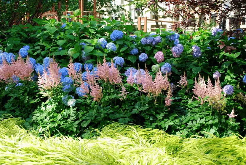Сочетание астильбы и гортензий в ландшафтном дизайне участкаИсточник diz-cafe.com