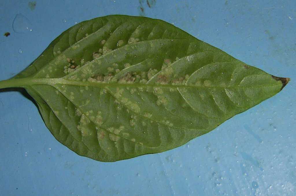 Как и все грибки, эта болезнь возникает при высокой влажности, но для нормального развития требует повышенных температур. Симптоматика состоит в маслянистых пятнах на стеблях и листьях, со временем меняющих цвет на серовато-бурый.