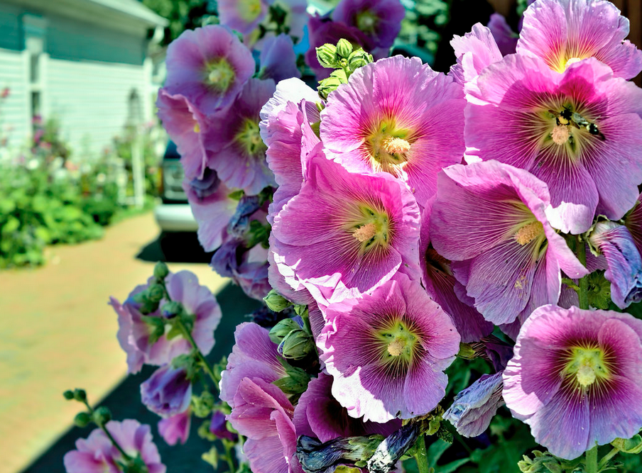 Цветы мальвы бывают розового, белого, пурпурного, красного, желтого или оранжевого цвета, которые выглядят потрясающе, когда их массово сажают в дачных садах или клумбах. Большие средне-зеленые листья мальвы образуют грубоватый фон для его цветов и других близлежащих растений.