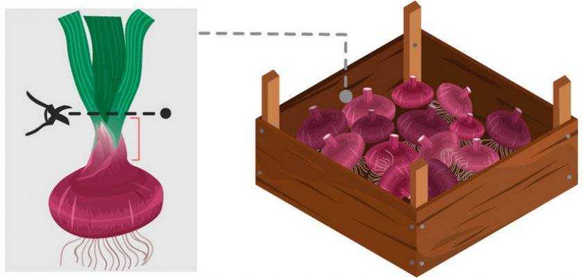 После того как усечение произведено, луковицы остаются в грунте, нужно дать им время напитаться питательными элементами, также они должны сформироваться и подготовиться к зимовке. На это понадобится около месяца.