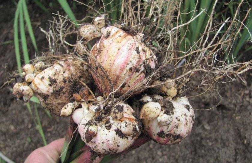 Затягивать уборку нельзя! Иначе возможны поражения клубнелуковиц болезнями.