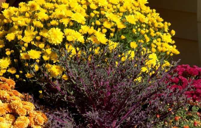 Если посадить хризантемы разных сортов, подходящие по окраске соцветий, в один горшок, то в период цветения они будут смотреться очень эффектно