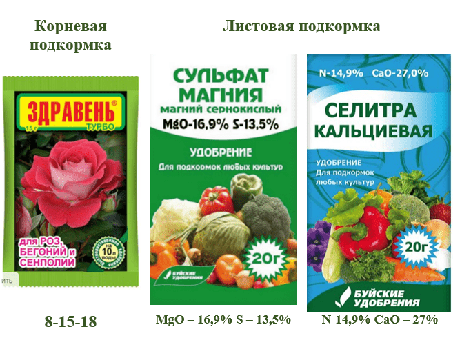 - кальций (азотнокислый, сернистый кальций) — для укрепления корней;