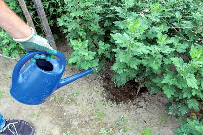 - полить кусты под корень, исключая попадание на листья и стебель, чтобы растение не получило ожоги.
