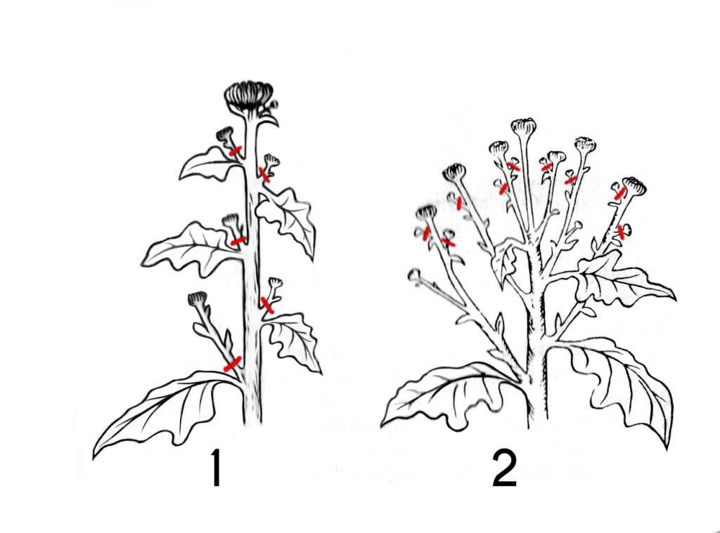 Важно знать, что количество прищипок зависит от сорта, характера роста, срока цветения, чувствительности к изменению светового дня. Максимальное количество прищипок 2 (в редких случаях 3), и как правило, они способствуют увеличению размера соцветия