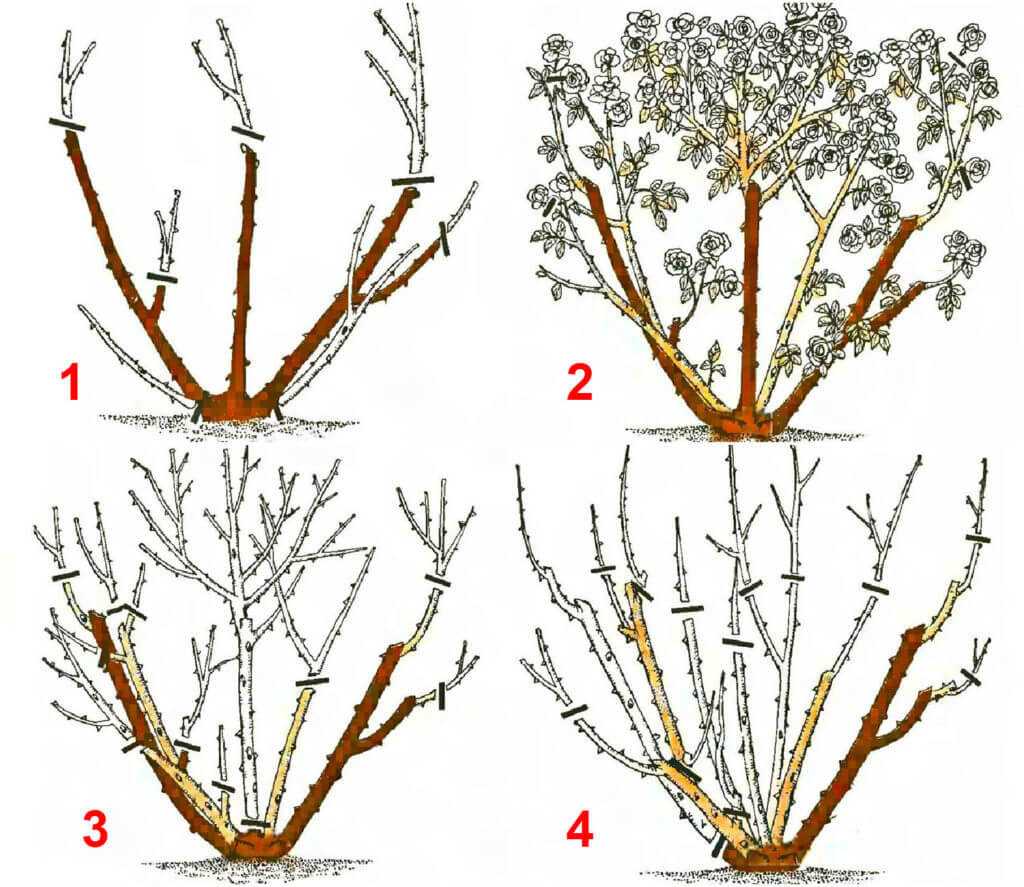 При весенней обрезке до начала сокодвижения куст стригут, чтобы выросло больше побегов, так как на них будут завязываться бутоны.