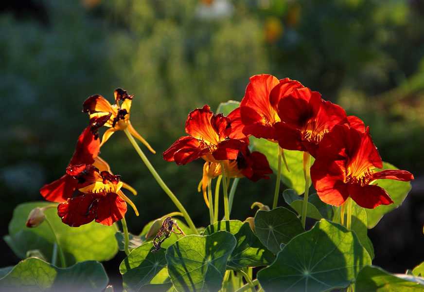 Настурция отпугивает белокрылку, колорадского жука и гусениц капустницы.