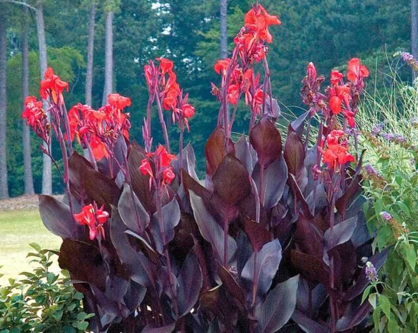 Канна тропическое растение, поэтому для посадки нужно выбрать солнечное не затененное место с влажным грунтом и защищенное от сквозняков. Наилучшее место для посадки – рядом с домом или другим строением, но так, чтобы растение просматривалось со всех сторон. Так как растение высокое, то в соседи лучше выбрать теневыносливые культуры.
