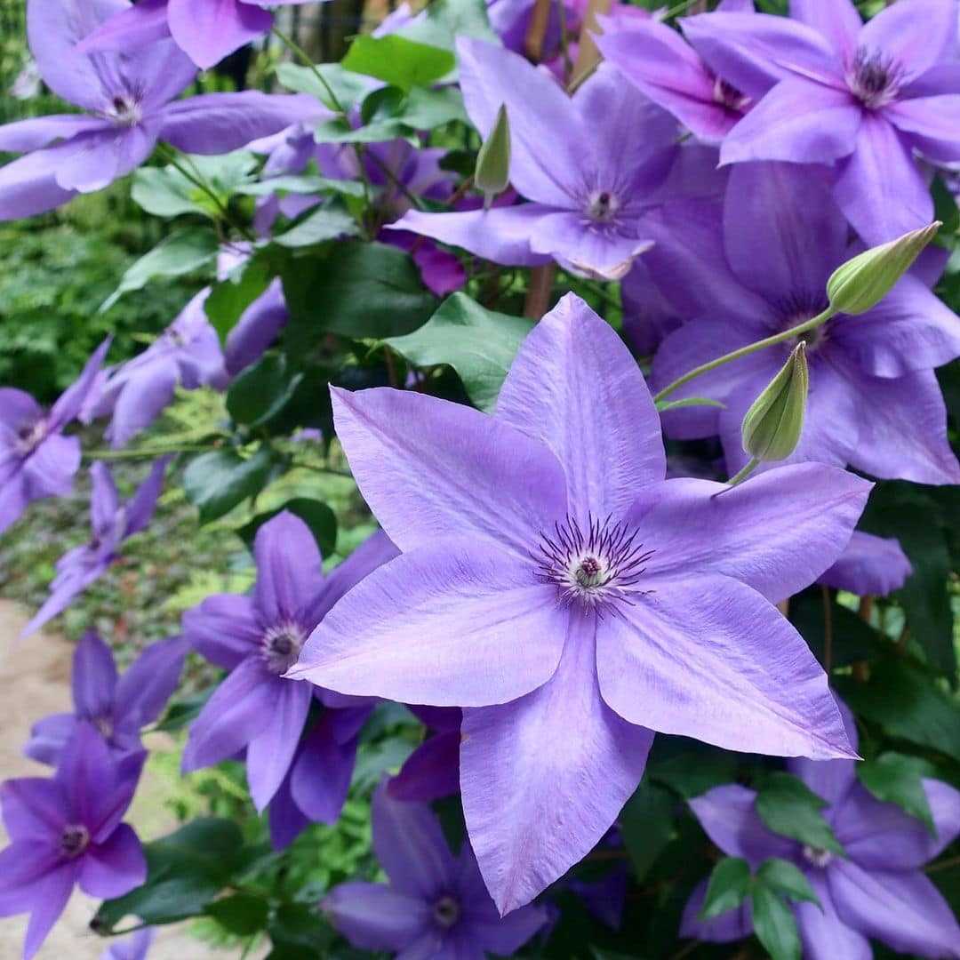 Это вьющееся растение, способное украсить не только клумбы, но и арку, беседку, любую опору. Цветет растение изысканно, причем до глубокой осени. Окраска лепестков клематиса потрясающе разнообразна — любой садовод подберет для себя самый подходящий оттенок.
