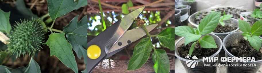 Дурман размножается при помощи боковых и верхушечных побегов. Сбор урожая обычно производят в конце сентября: от зрелого побега срезают неодревесневший стебель с 2-3 междоузлиями, надрез делают сразу под узлом, удаляют самую крупную листву. Затем укореняют в легкой почве (вермикулит, торф, перлит) или в воде: они хорошо приживаются в плодородной почве или просто в стакане воды. Однако не лишним будет создать тепличные условия. Для этого можно взять обычный пакет и накрыть им растение, через 10 дней пакет нужно снять, за это время уже должны сформироваться первые листочки.