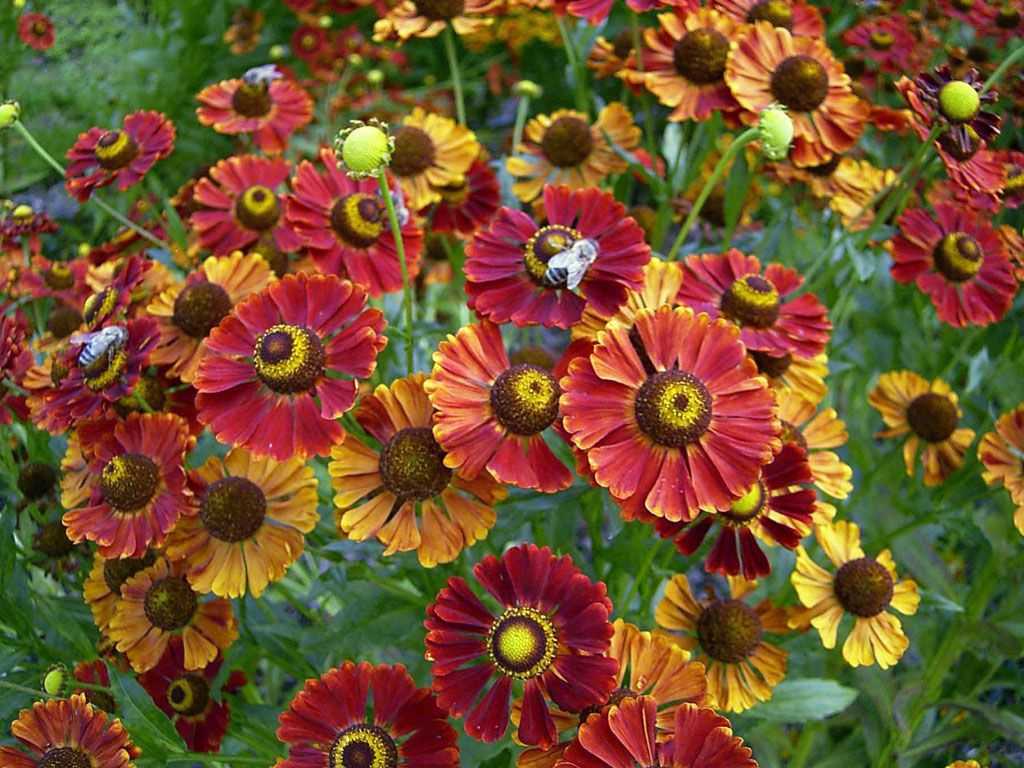 Очень декоративна и вынослива. Достигает до 1,6 м. Крупные красные или желтые цветы распускаются летом. Гелениум имеет слабое корневище и сильно разветвленные стебли. Размножается молодыми побегами и семенами.
