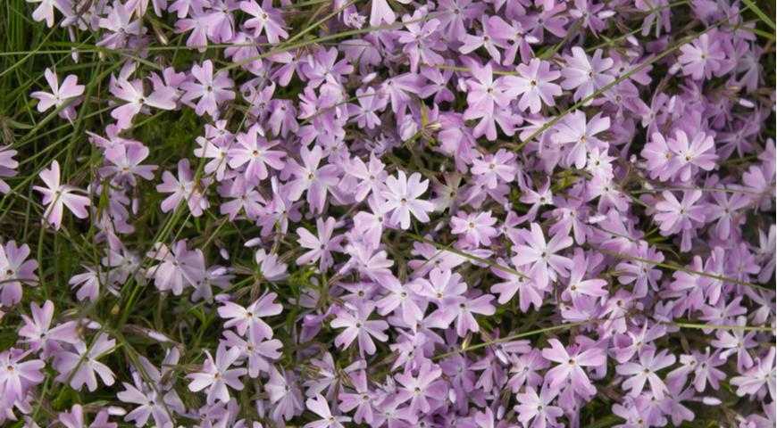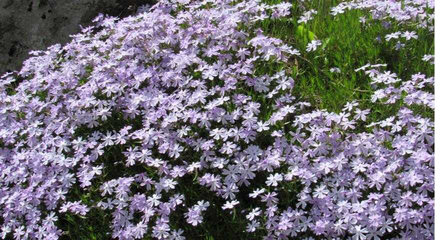 Флокс столононосный быстро нарастает, образуя пышный ковер, цветущий в зависимости от сорта розовыми, белыми, карминными или голубыми цветками. Этот вид хорошо растет в чуть сыроватых полутенистых местах и даже под кроной деревьев.