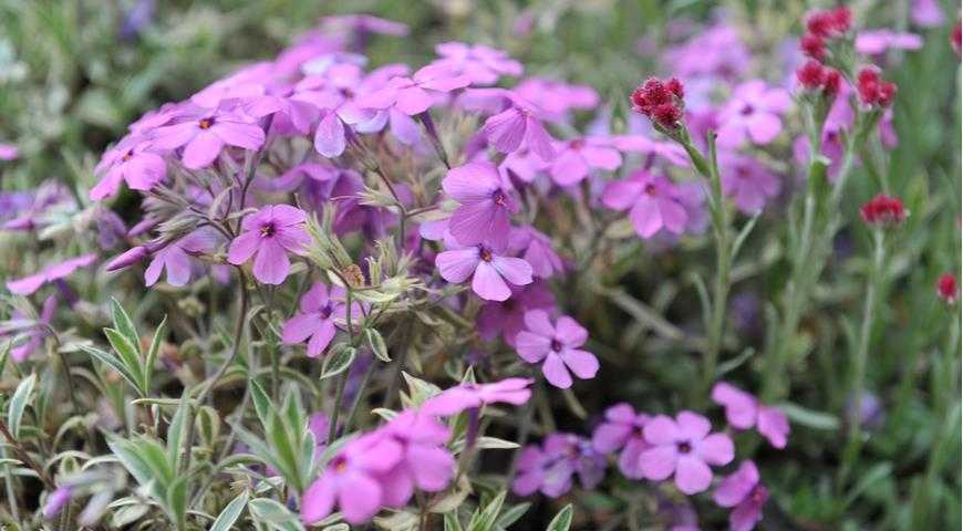 Флокс прижатый Variegata и кошачья лапка двудомная (Antennaria dioica) Rubra в мае