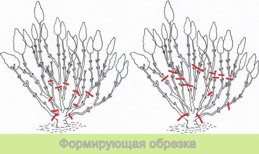Данное мероприятие начинают проводить со второго года после посадки. Осенью, когда растение уже отцвело, удаляют все слабые, растущие внутрь, кривые побеги, а также соцветия. На зиму лучше всего оставлять в пределах 10–12 мощных веток.