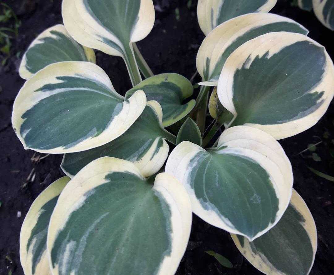 У сорта Lakeside Little Tuff красивые кремовые листья с ярко-зеленой каймой почти без черешков, так же как и у чрезвычайно модного карлика Hacksaw («ножовка») с сильно сборчатым краем листа, напоминающим зубья ножовки, за что она и получила свое оригинальное название.