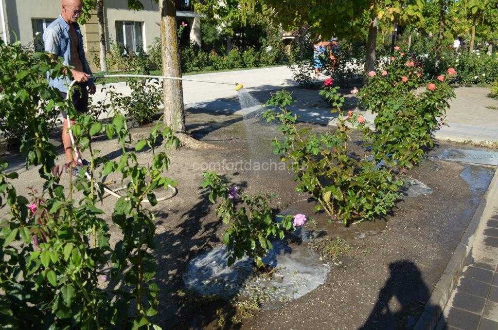 Начинать уход за розами следует сразу после посадки. На первом этапе цветку необходимы регулярные поливы, особенно в сухую и жаркую погоду. Для более быстрой адаптации цветку требуется равномерно распределенное увлажнение. Поливы следует производить, используя лейку с мелким ситечком, при этом жидкость должна просачиваться в почву достаточно глубоко, чтобы каждый корешок смог получить влагу.