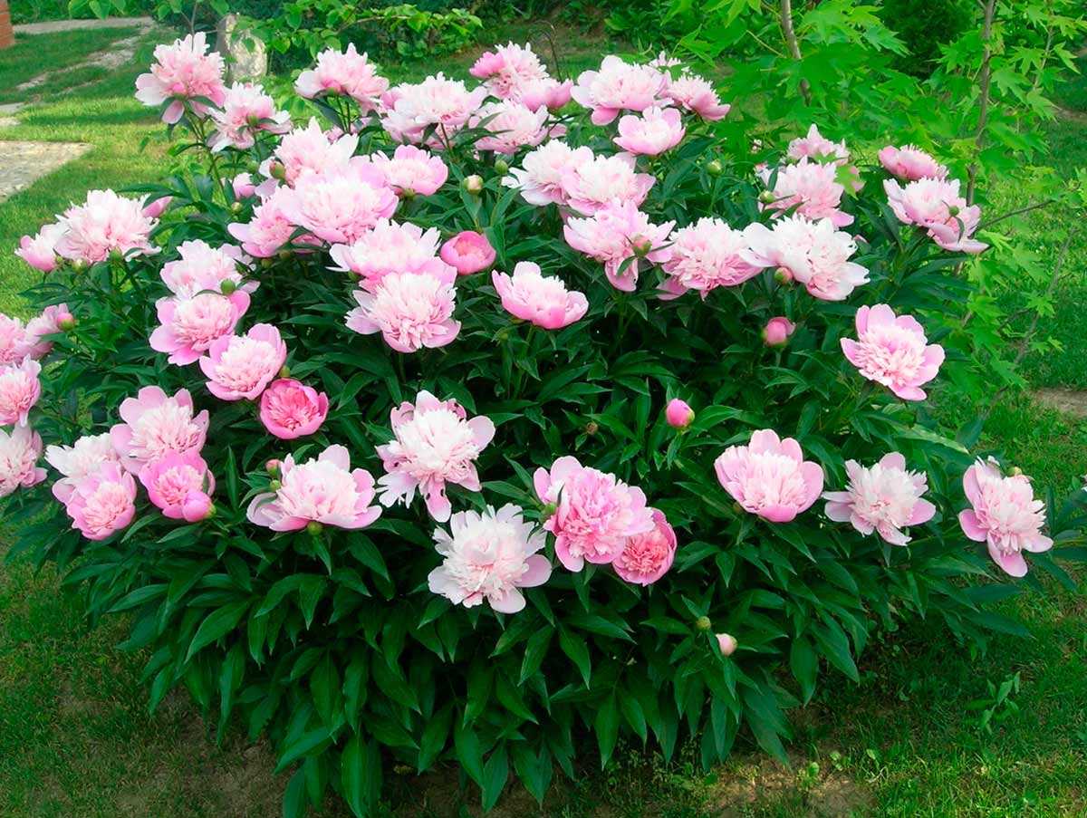 С какими кустарниками и цветами сочетаются пионы на клумбах? Они образуют эффектные комбинации с вечнозелеными растениями, крона которых регулярно подвергается обрезке: