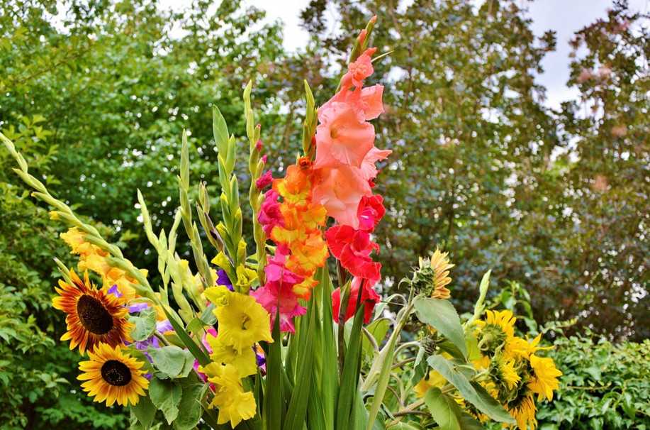 У тех гладиолусов, что выращивались для украшения клумбы, цветоносы все равно рекомендуется срезать за 40-45 дней до предполагаемой выкопки клубней, в первых числах сентября. Именно такой запас времени нужен луковице для того, чтобы успеть запасти на зиму питательные вещества. Если не дать растению этой возможности – в следующем году клубень не прорастет.