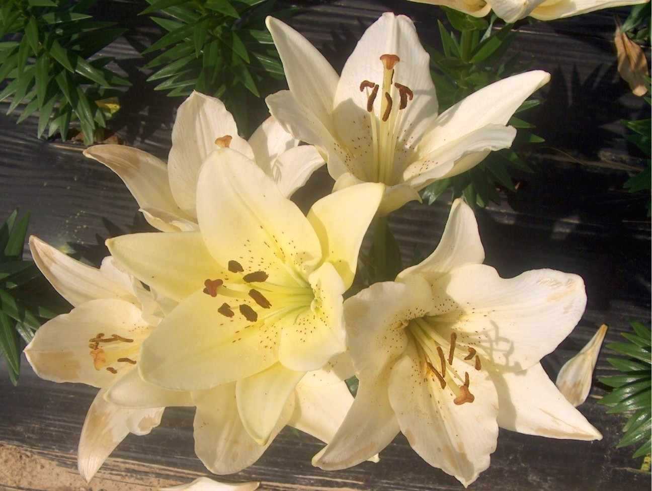 В первый год посадки прикрывают полиэтиленовой пленкой, чтобы неокрепшие растения не вымерзли. В последующие годы достаточно провести осенний влагозарядковый полив и накрыть лилии еловыми ветками или специальным укрывным материалом, например, лутрасилом.