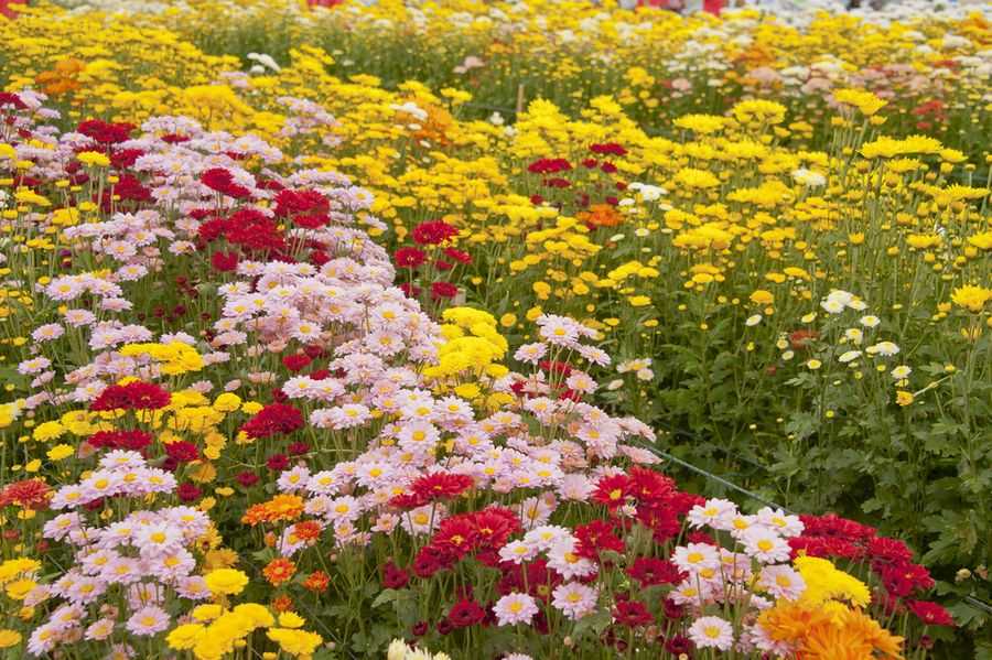Существенным плюсом является также и то, что хризантемы бывают практически любого цвета. Начиная с белых, жёлтых и сиреневых оттенков и заканчивая красными, розовыми и вишнёвыми. Они невероятно красиво подчеркивают центральные линии клумбы.