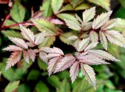 Китайская астильба – соцветия редко бывают длиной более 0,4 м. Сорт неприхотлив и имеет поникающее строение куста. Оттенки метелки бывают красного, белого или розового цветов;