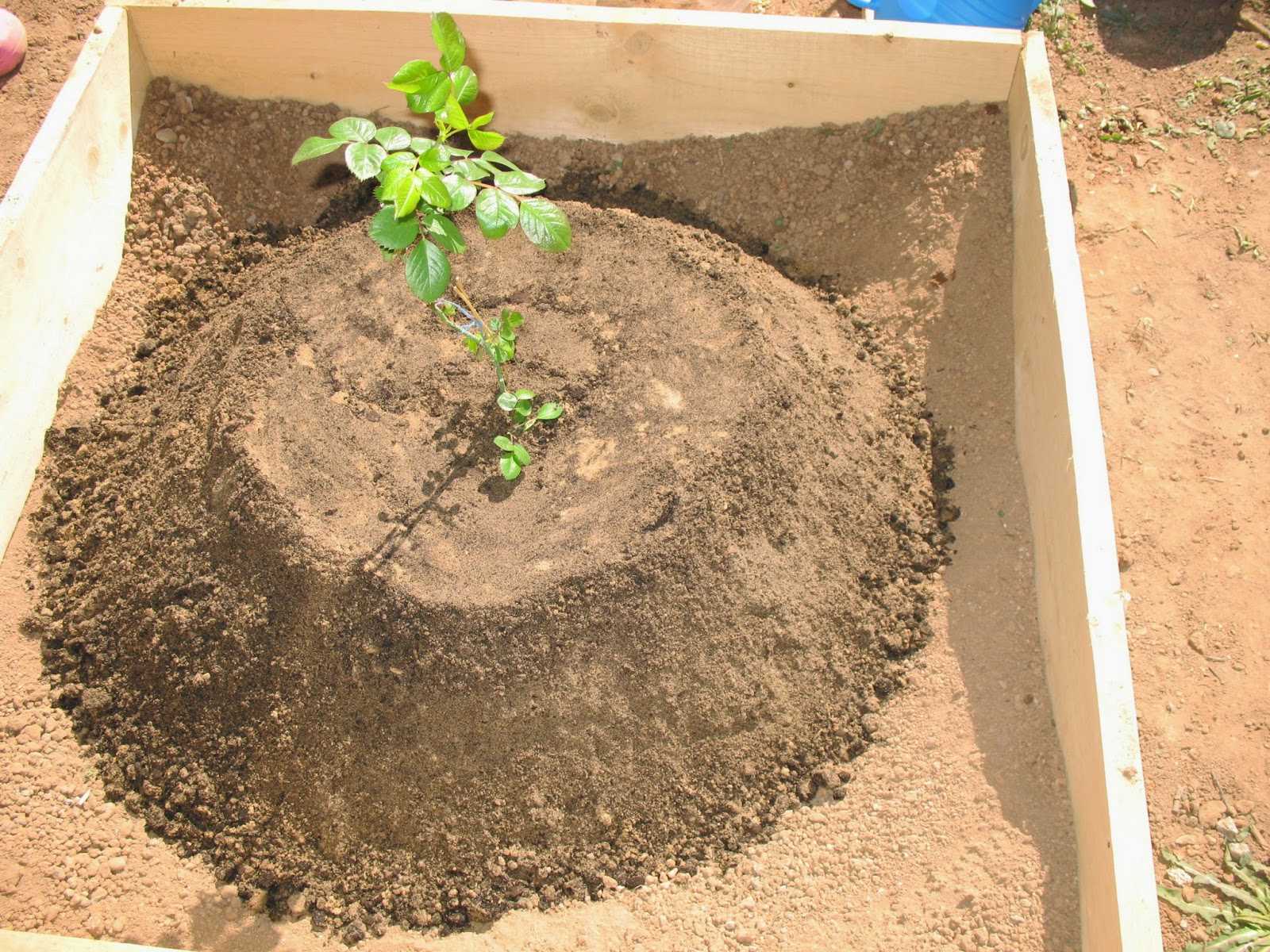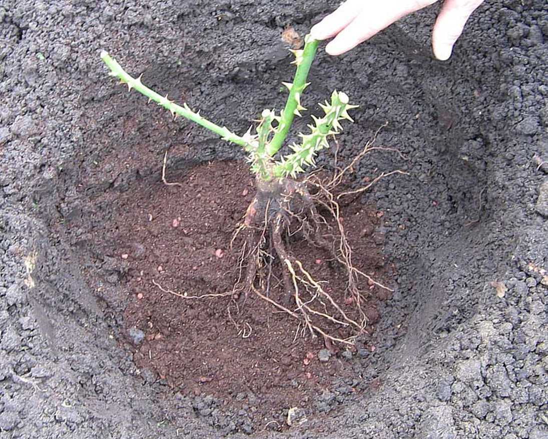 - В лунку, диаметром и глубиной до 50 см, вертикально размещается куст.