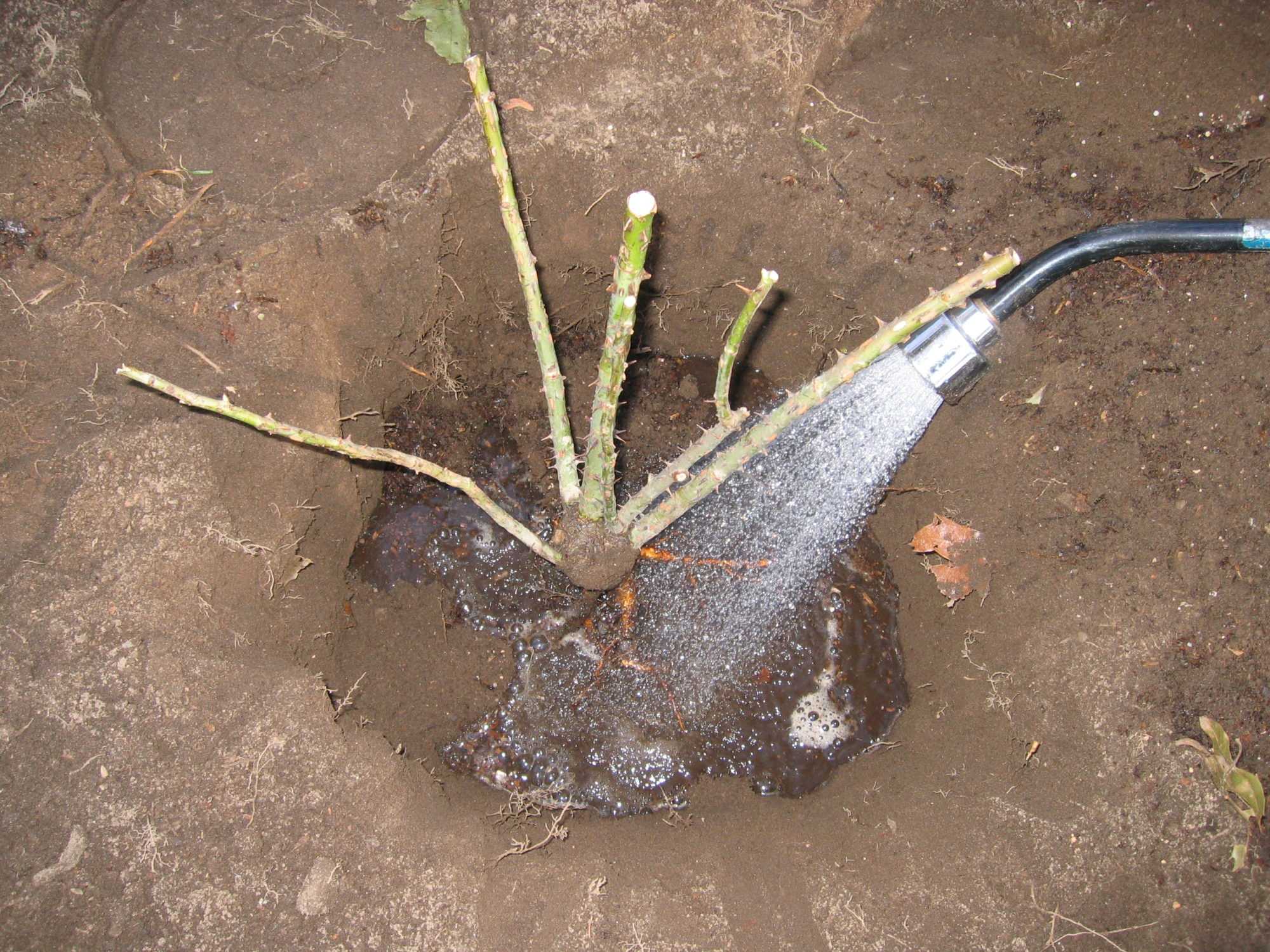 - Лунка засыпается почвой, куст хорошо увлажняется.