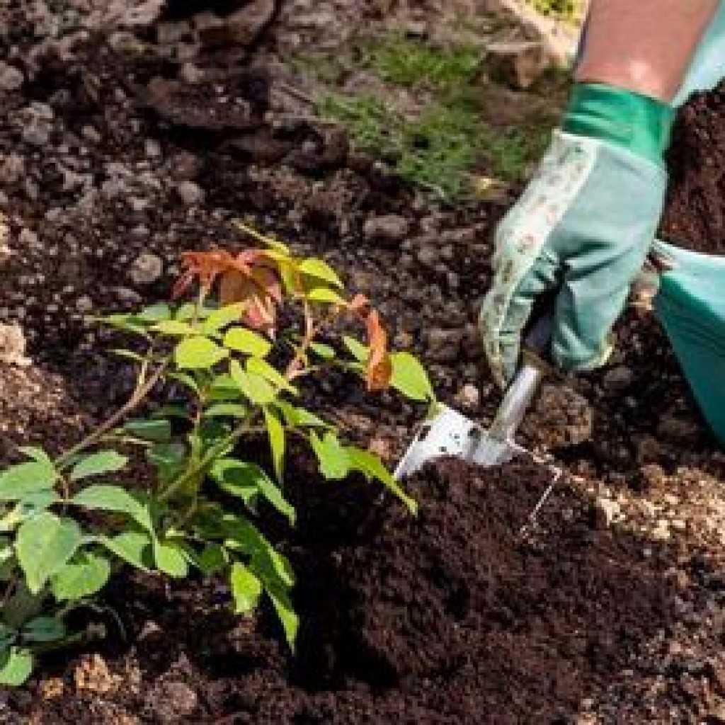 - Куст устанавливают в лунку, углубляя корневую шейку на 6−8 см в землю. Верхний слой земли немного трамбуется.