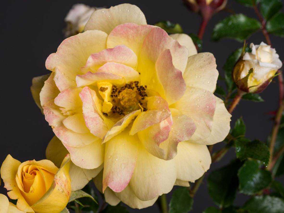 - плотные, густомахровые розы желтого цвета, золотой/лимонный отлив;
