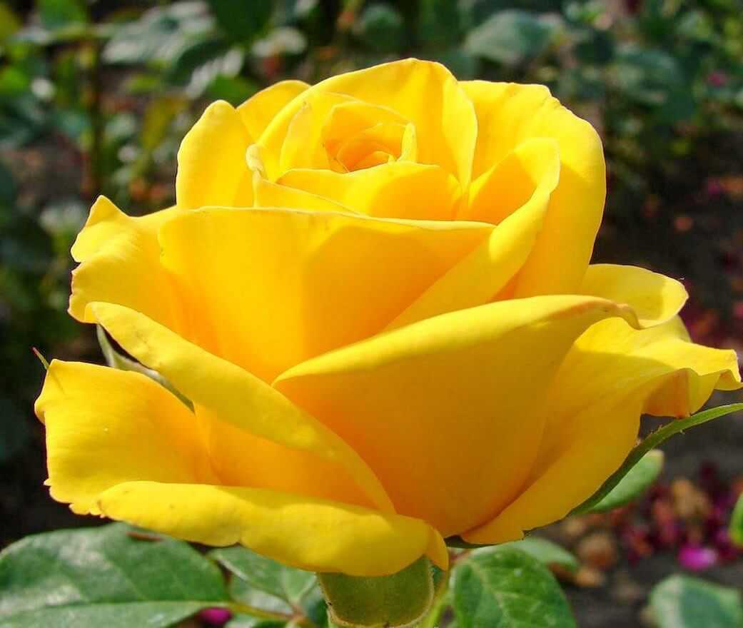 Интенсивный желтый цвет сохраняется достаточно долго, однако под палящими лучами солнца она может выгорать до светло-лимонного или даже сливочного окраса.