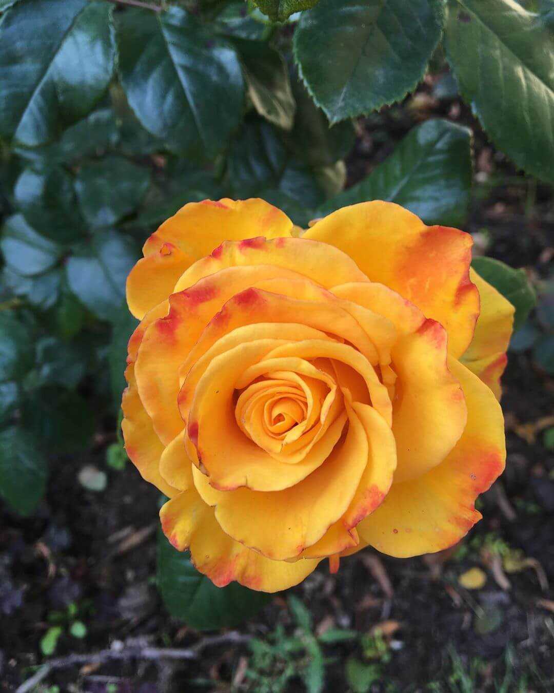 Цвет приятный, привлекательный, ярко-желтый. Очень выделяет Керио на фоне других роз. У раскрывшихся цветков по краям появляется характерная оранжевая полоска.