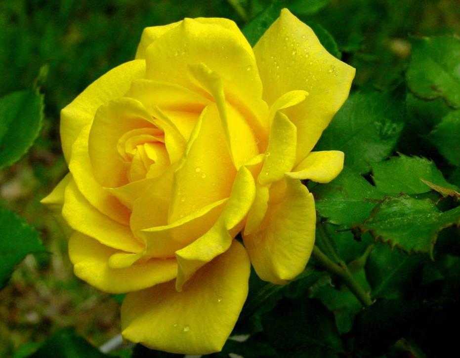 Бутон розы Керио имеет солнечно-желтый оттенок, бокаловидную правильную форму. В диаметре распустившийся бутон достигает 13-15 см, что довольно много. Лепестки насыщенного желтого оттенка, веселого и яркого, в одном бутоне их может быть около 35 штук.