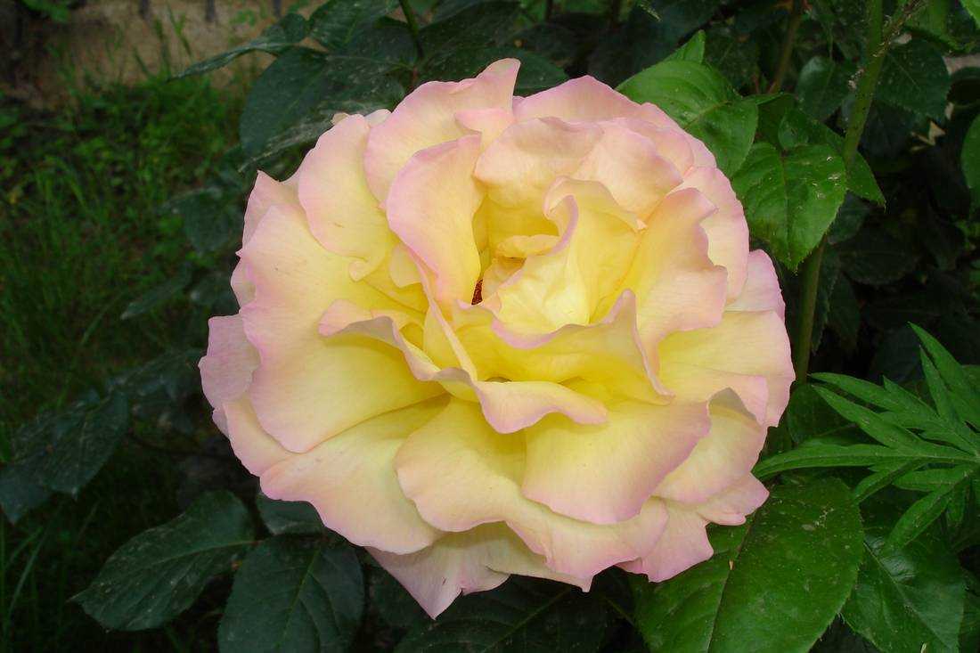 Описание цветка Глория Дей всегда начинается со слова «нежный». И действительно, первое чувство, которое вызывает этот вид розы – нежность. Цветок имеет необычный лимонно-желтый окрас с легким розовым отливом, как показано на фото. Он источает тончайший, приятный запах. Очень интересно наблюдать, как плетистая розочка Глория, меняет свой окрас в ходе раскрытия бутона. Вначале бутончик имеет зеленовато-желтый окрас. Позже, лепестки приобретают золотистый цвет с едва уловимым розоватым оттенком. И уже в момент полного открытия бутона, крайние части лепестков обретают насыщенный светло-розовый тон.